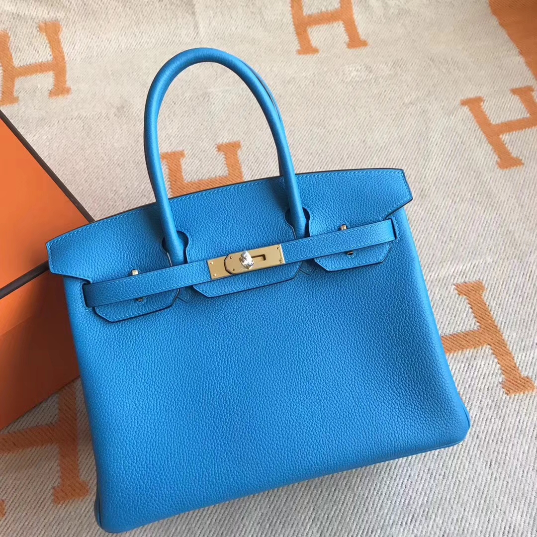 Brand: Hermes; Style: Birkin Bag; Material: Togo Calfskin Leather;Color: B3 Blue Zanzibar & Malachite Green inner; Size:30cm; Hardware: Gold; Accessories: Padlock and Keys, Dust Bag.Function:Tote Bag.