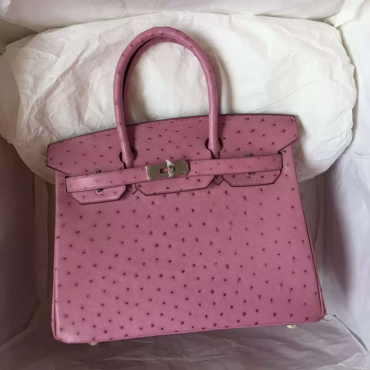 Hermes Birkin Bag in Pink Purple Ostrich Leather Ladies Handbag 30CM