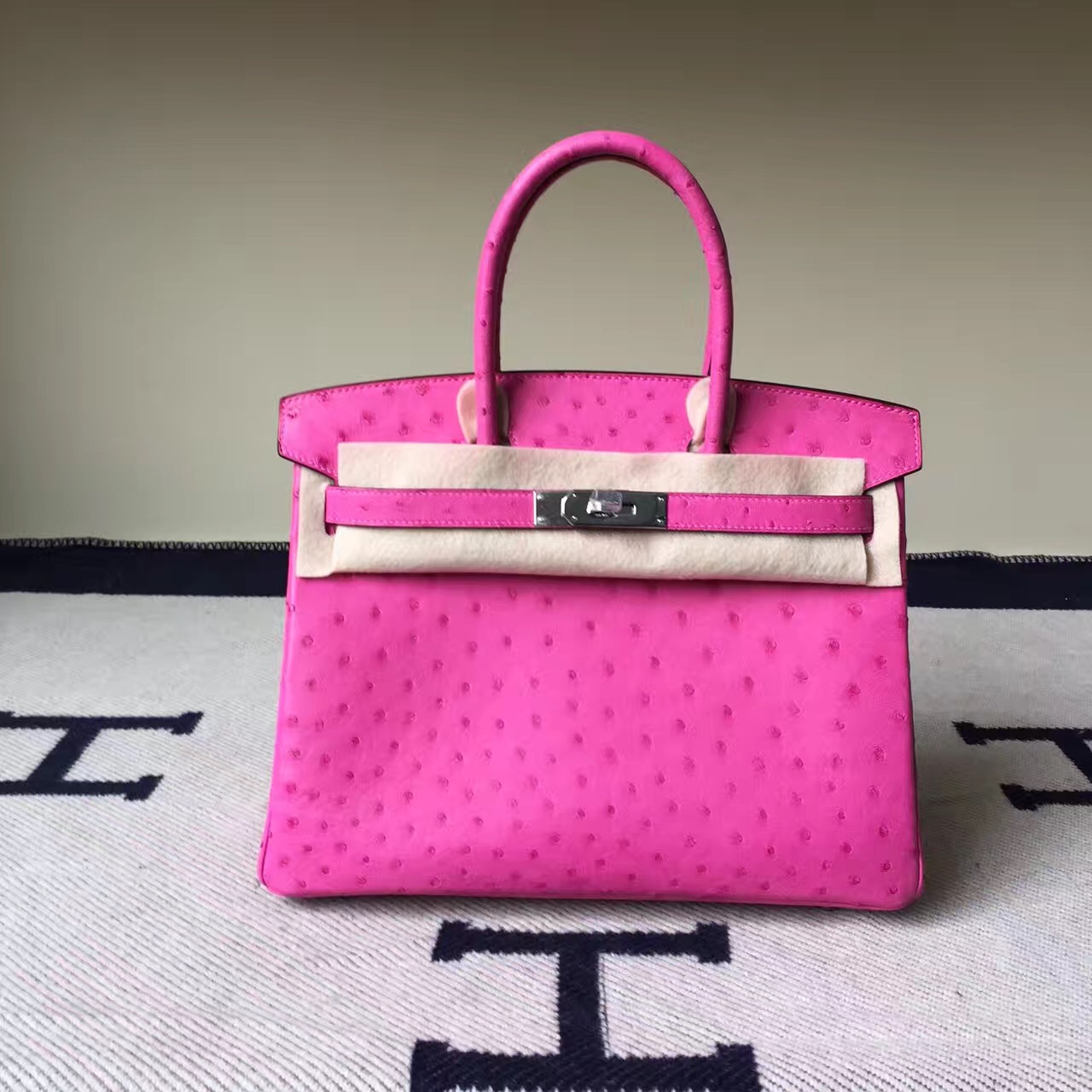 Brand: Hermes; Style: Birkin Bag 30cm; Material: Ostrich Leather;Color: E5 Rose Tyrien; Hardware: silver/gold; Accessories: Padlock and keys,dust bag.Function:tote bag.