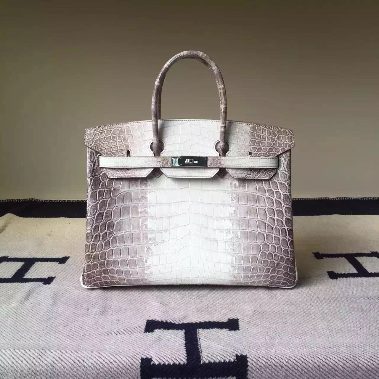 Brand: Hermes; Style: Birkin Bag 35cm; Material: Crocodile Leather;Color: Himalaya ; Hardware: Silver/gold; Accessories: Padlock and keys, dust bag.Function:tote bag.