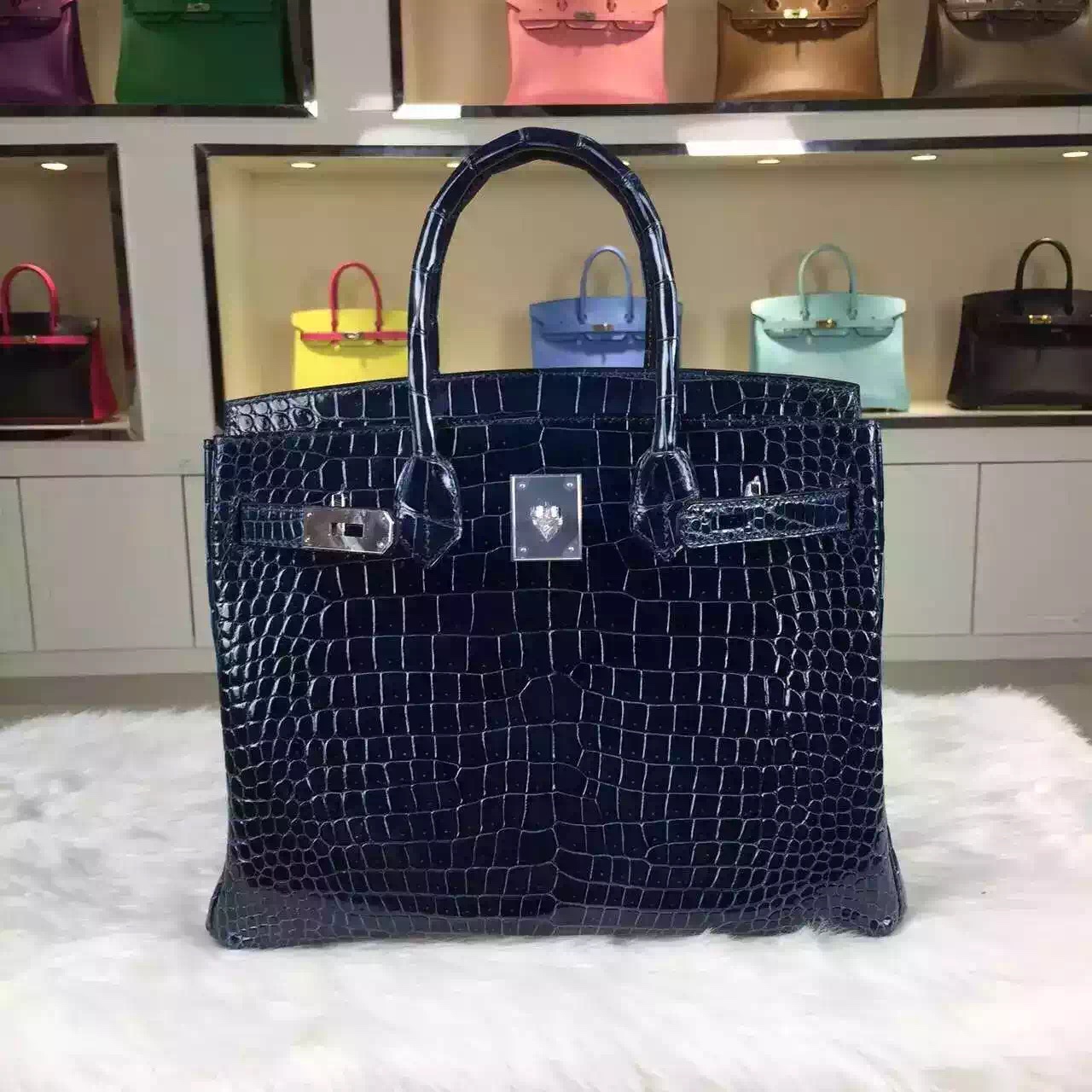 Hermes Jean Blue France Crocodile Shiny Leather Birkin 30CM Tote Bag
