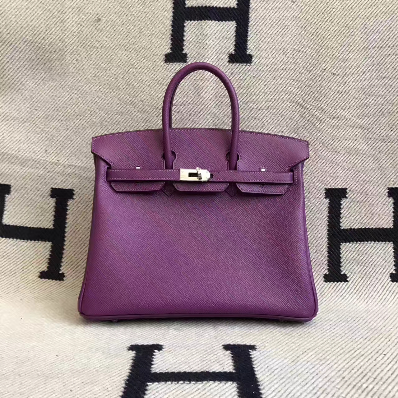 Brand: Hermes; Style: Birkin Bag 25cm; Material: Epsom Calfskin Leather;Color:P9 Anemone Purple; Hardware: silver/gold; Accessories: Padlock and keys,dust bag.Function:tote bag.