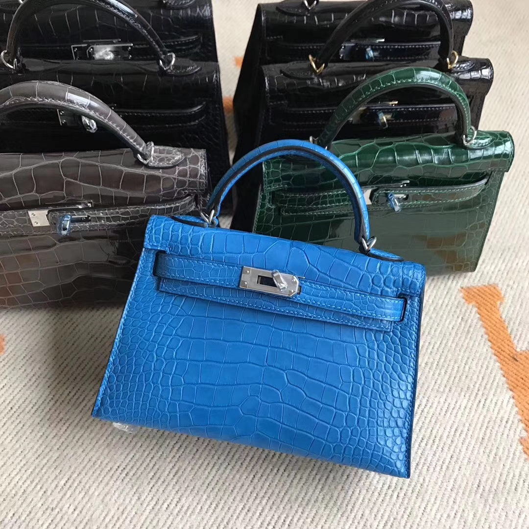 Brand: Hermes; Style: Minikelly-2 ; Material: Alligator Matt Crocodile Leather;Color:7T Blue Electric; Hardware: Silver; Size:19CM; Accessories: Padlock and keys, dust bag.Functions: Tote Bag, Clutch Bag,Evening Bag