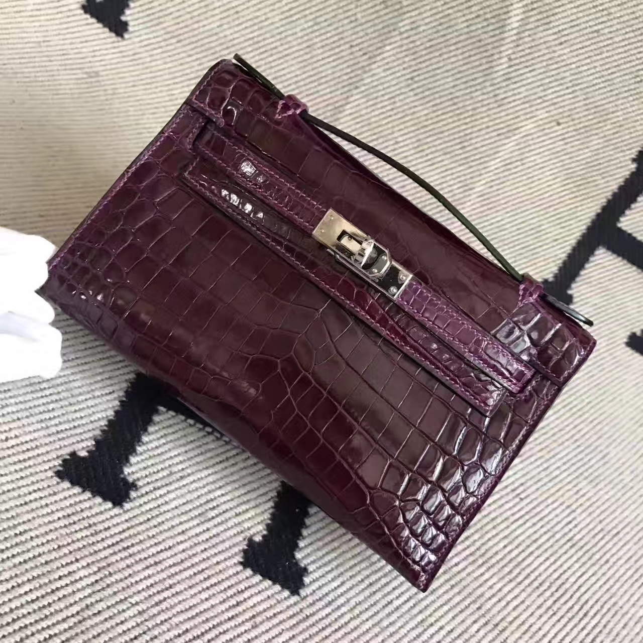 Brand: Hermes; Style: Minikelly pochette 22CM ; Material: Crocodile Shiny Leather;Color: Fuchsia; Hardware: silver/gold; Accessories: Padlock and keys, dust bag.Functions: tote bag, clutch bag.