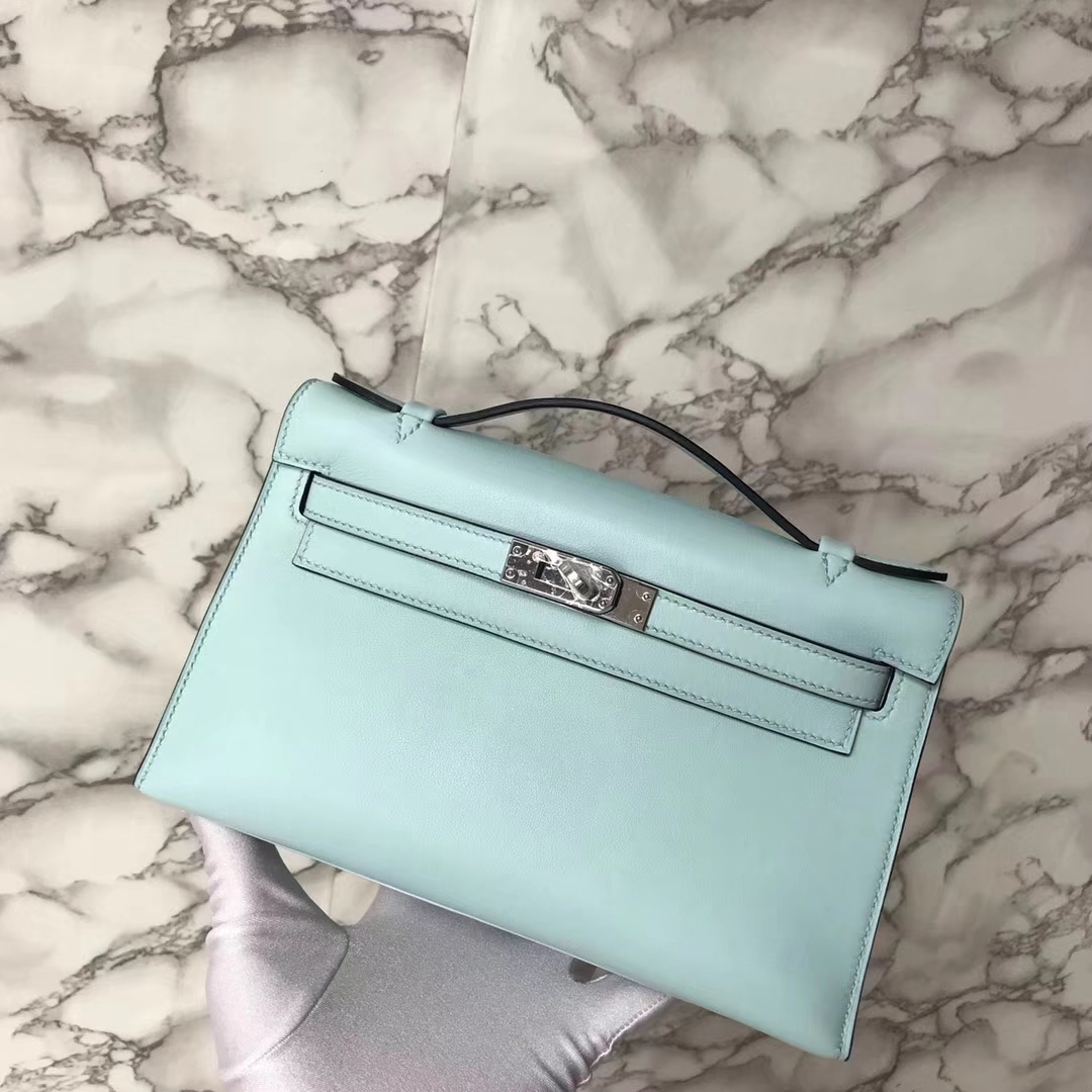 Brand: Hermes; Style: Minikelly Pochette 22CM ; Material:Swift Calf Leather;Color:U2 Blue Zephyr; Hardware:Silver; Accessories: Padlock and Keys, Dust Bag.Functions: Tote Bag, Clutch Bag,Evening Bag.
