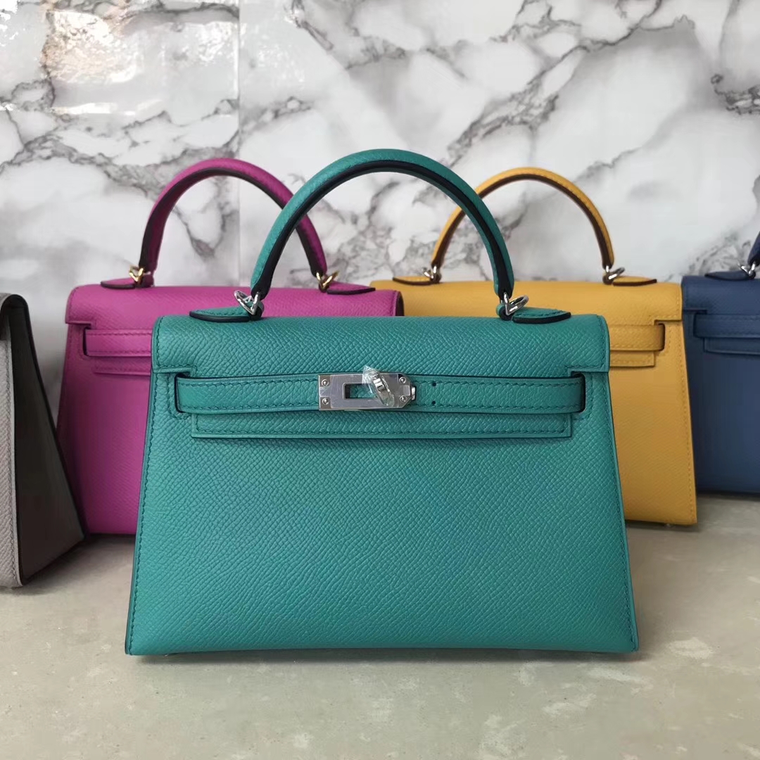 Brand: Hermes; Style: Minikelly-2 ; Material: Epsom Calf Leather;Color:Blue Paon; Hardware: Silver; Size:19CM; Accessories: Padlock and keys, dust bag.Functions: Tote Bag, Clutch Bag,Evening Bag