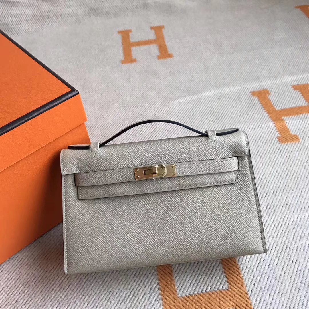 Brand: Hermes; Style: Minikelly Pochette 22CM ; Material: Epsom Calfskin Leather;Color: 8M Gris Paris; Hardware: Gold; Accessories: Padlock and Keys, Dust Bag.Functions: Tote Bag, Clutch Bag.