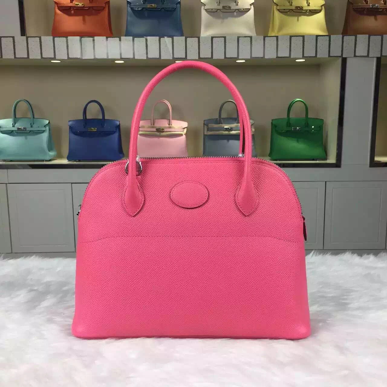 Brand: Hermes; Style: Bolide Bag; Material: epsom calfskin leather;Color:8W Rose Azalee; Size:27*20*10CM; Hardware: silver/gold; Accessories: dust bag.Function:tote bag.