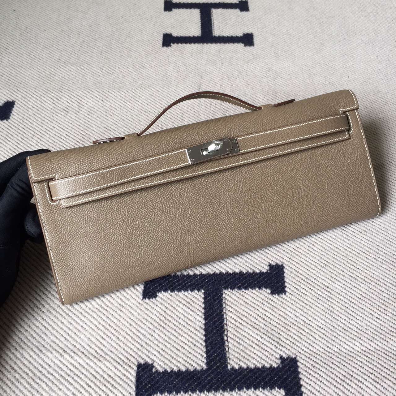 Brand: Hermes; Style: Kelly Cut; Material: Epsom Calfskin Leather;Color: C81 Etoupe Grey; Size: 31CM; Hardware: silver/gold; Accessories: Padlock and keys, dust bag.Functions: tote bag,clutch bag.