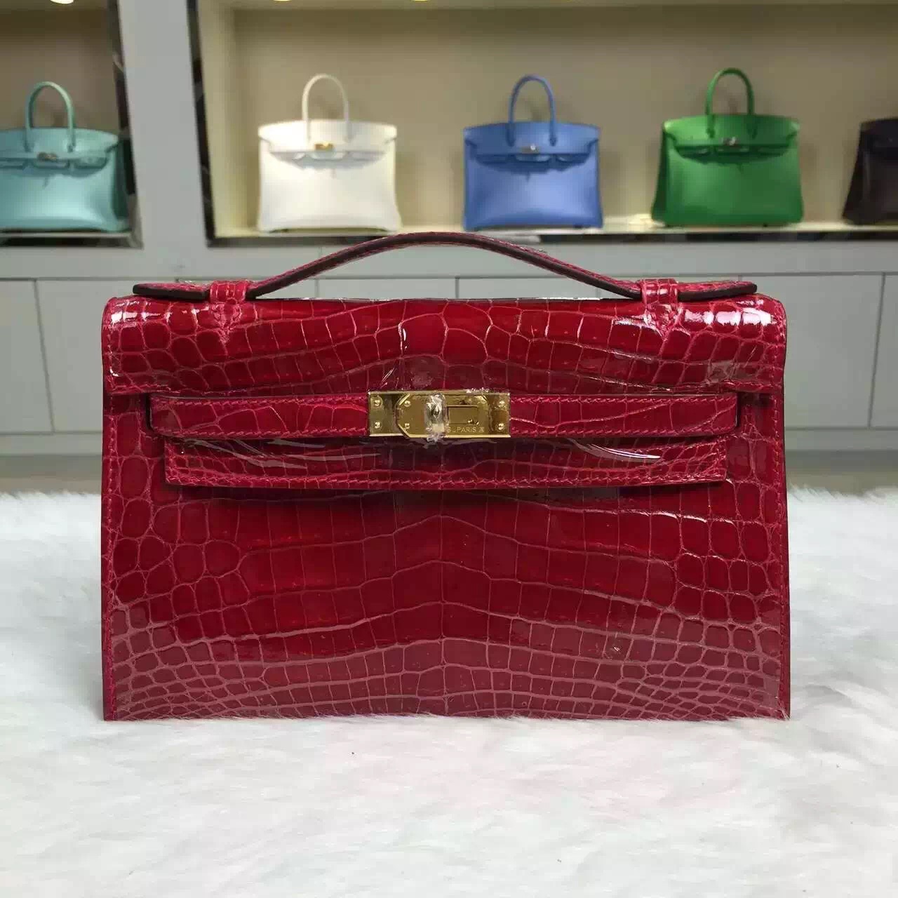 Hand Stitching Hermes Chinese Red Crocodile Skin Mini Kelly Pochette 22CM