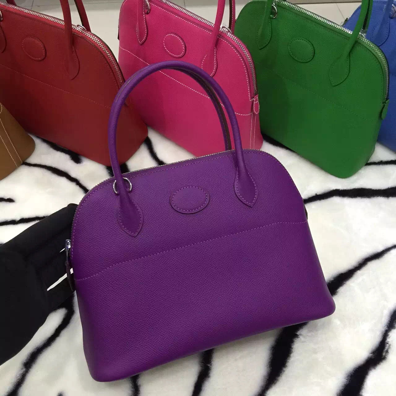 Brand: Hermes; Style: Bolide Bag; Material: epsom leather;Color:P9 Anemone Purple; Size:27CM; Hardware: silver; Accessories: dust bag.Function:tote bag.