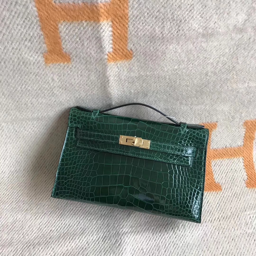 Hermes Minikelly Clutch Bag 22CM CK67 Vert Fonce Alligator Shiny Crocodile