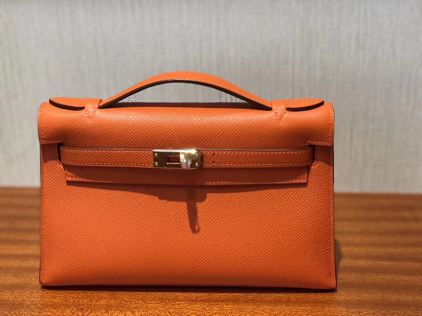 Brand: Hermes; Style: Minikelly Pochette 22CM ; Material:Epsom Calf Leather;Color:93 Orange; Hardware:Gold; Accessories: Padlock and Keys, Dust Bag.Functions: Tote Bag, Clutch Bag,Evening Bag.