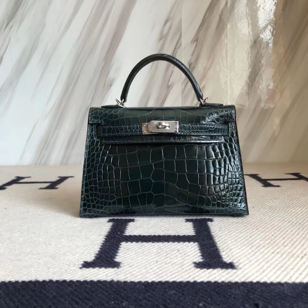 Brand: Hermes; Style: Minikelly-2 ; Material: Alligator Shiny Crocodile Leather;Color:1P Blue Colvert ; Hardware: Silver; Size:19CM; Accessories: Padlock and keys, dust bag.Functions: Tote Bag, Clutch Bag,Evening Bag
