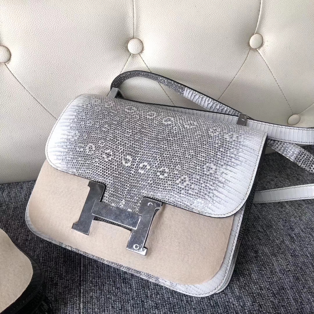Brand: Hermes; Style: Constance Bag; Material: Shiny Lizard Leather;Color:01 Nature Color; Size:24cm; Hardware:Silver; Package:Complete Package.Function:Shoulder Bag,Cross Body Bag.
