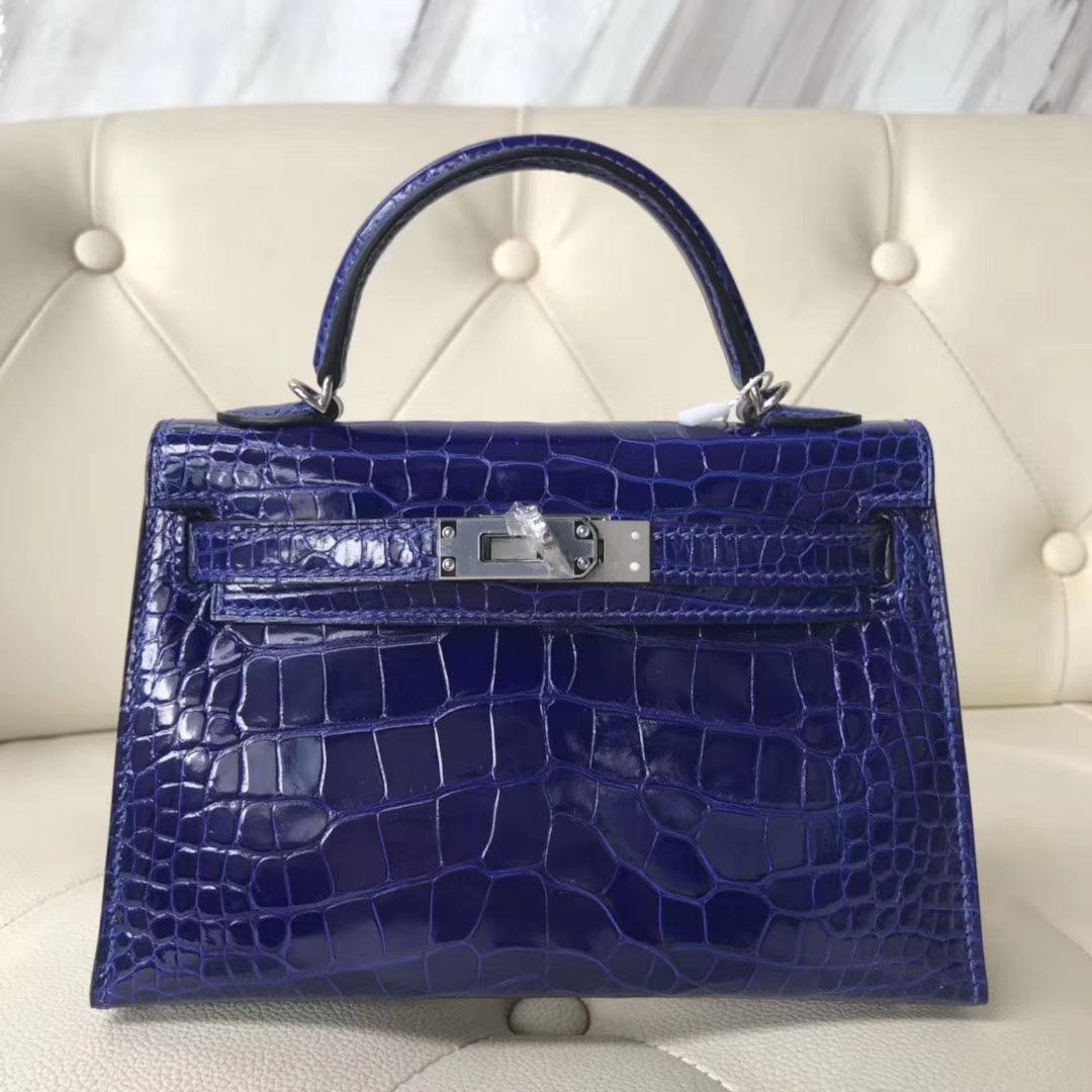 Brand: Hermes; Style: Minikelly-2 ; Material: Alligator Shiny Crocodile Leather;Color:7T BlueElectric; Hardware: Silver; Size:19CM; Accessories: Padlock and keys, dust bag.Functions: Tote Bag, Clutch Bag,Evening Bag