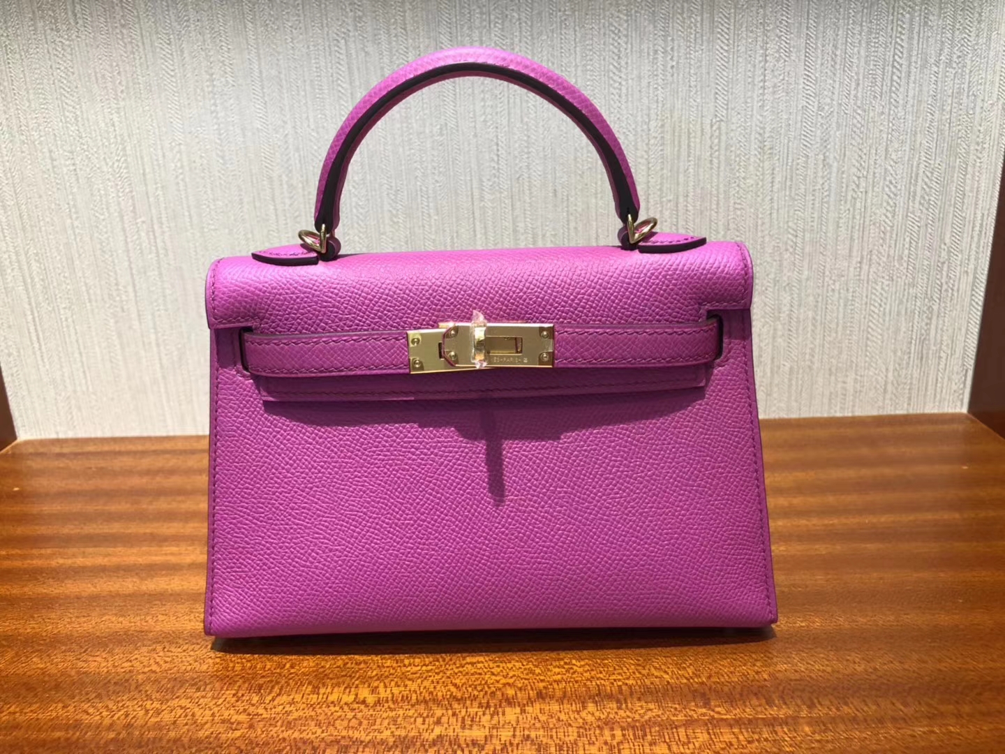 Brand: Hermes; Style: Minikelly-2 ; Material: Epsom Calf Leather;Color:9I Rose Magnolia; Hardware: Gold; Size:19CM; Accessories: Padlock and keys, dust bag.Functions: Tote Bag, Clutch Bag,Evening Bag