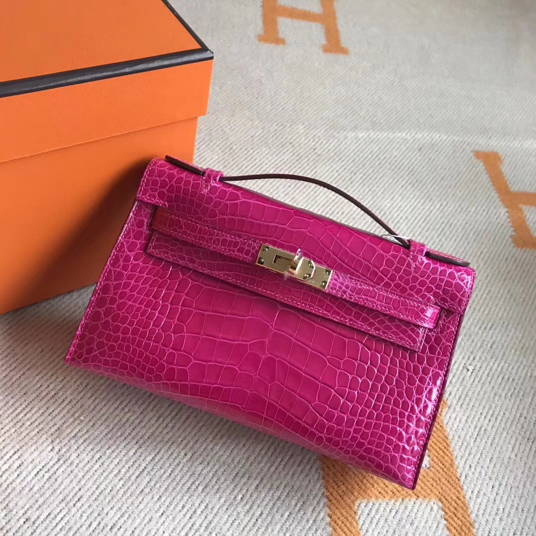 Brand: Hermes; Style: Minikelly Pochette 22CM ; Material: Crocodile Shiny Leather;Color: J5 Peach Pink; Hardware: Gold; Accessories: Padlock and Keys, dust bag.Functions: Tote Bag, Clutch Bag.