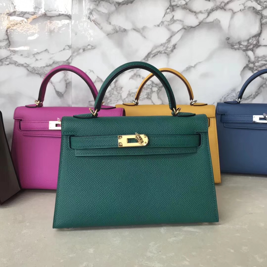 Brand: Hermes; Style: Minikelly-2 ; Material: Epsom Calf Leather;Color:Z6 Malachite Green; Hardware: Gold; Size:19CM; Accessories: Padlock and keys, dust bag.Functions: Tote Bag, Clutch Bag,Evening Bag