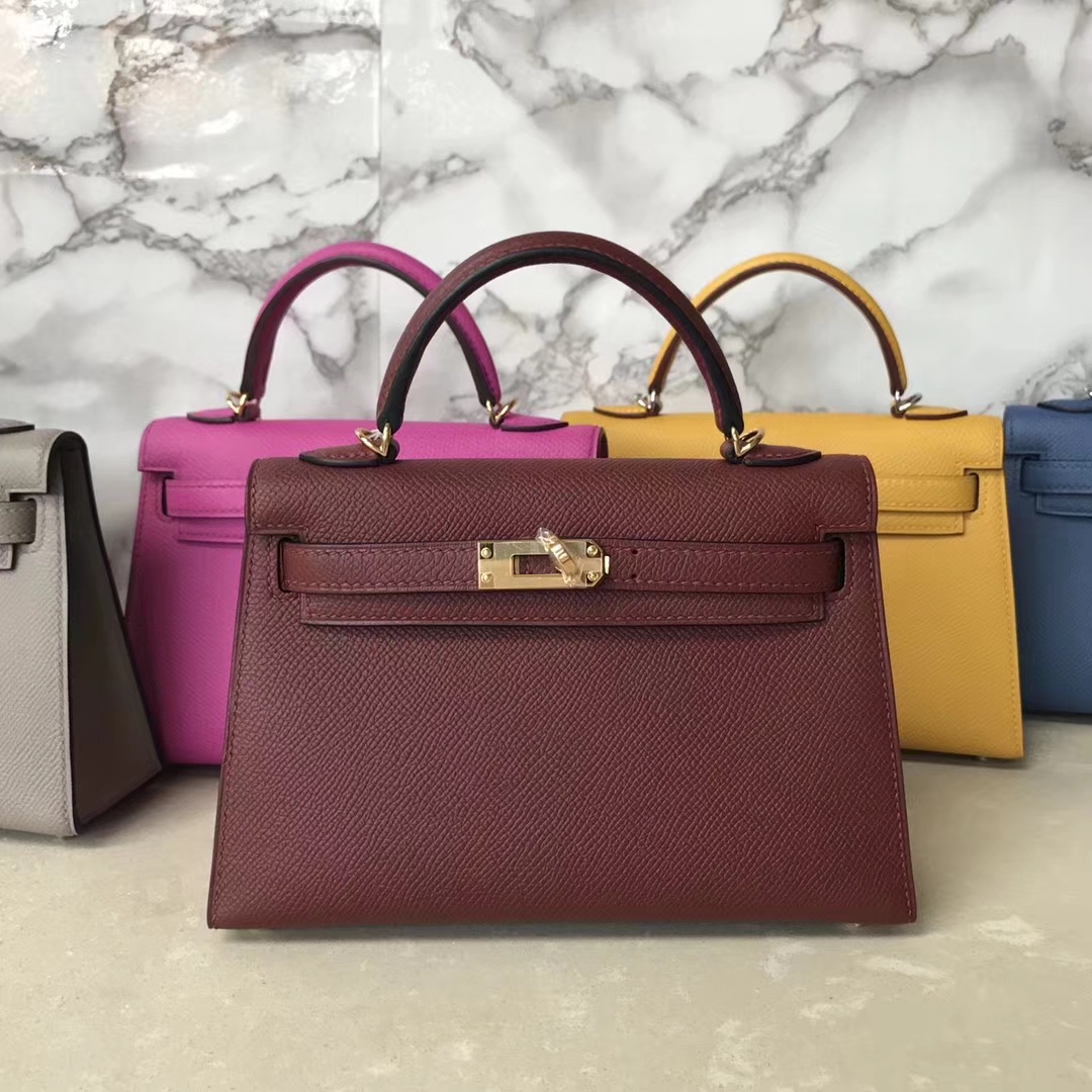 Brand: Hermes; Style: Minikelly-2 ; Material: Epsom Calf Leather;Color:CK55 Rouge Hermes; Hardware: Gold; Size:19CM; Accessories: Padlock and keys, dust bag.Functions: Tote Bag, Clutch Bag,Evening Bag