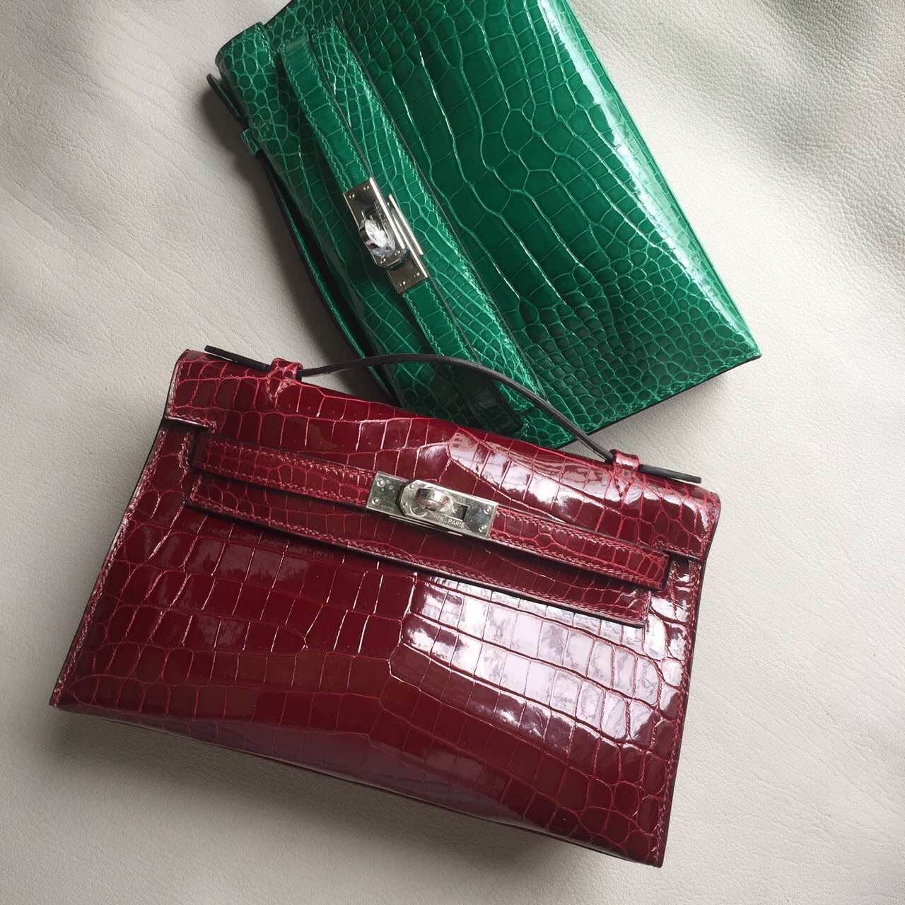 Brand: Hermes; Style: Mini Kelly Bag 22CM ; Material: Crocodile Shiny Leather;Color: F5 Bourgogne Red; Hardware: gold/silver; Accessories: Padlock and keys, dust bag.Functions: tote bag,shoulder bag,clutch bag.