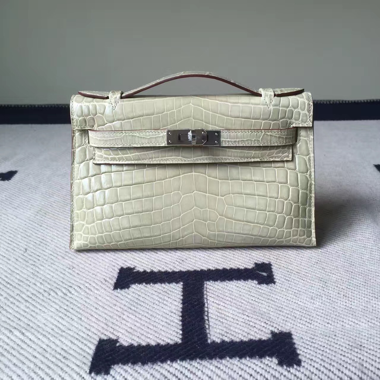 Hermes Minikelly Clutch Bag 22cm 8L Beton White Crocodile Leather