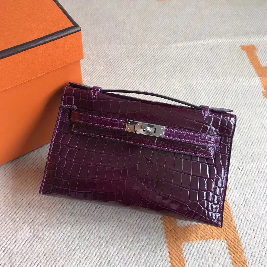 Hermes Minikelly Clutch Bag 22CM Crocodile Leather Silver Hardware