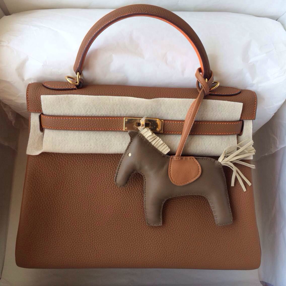 32cm Kelly Bag C37 Light Coffee/93 Orange inner France Togo Leather Wholesale