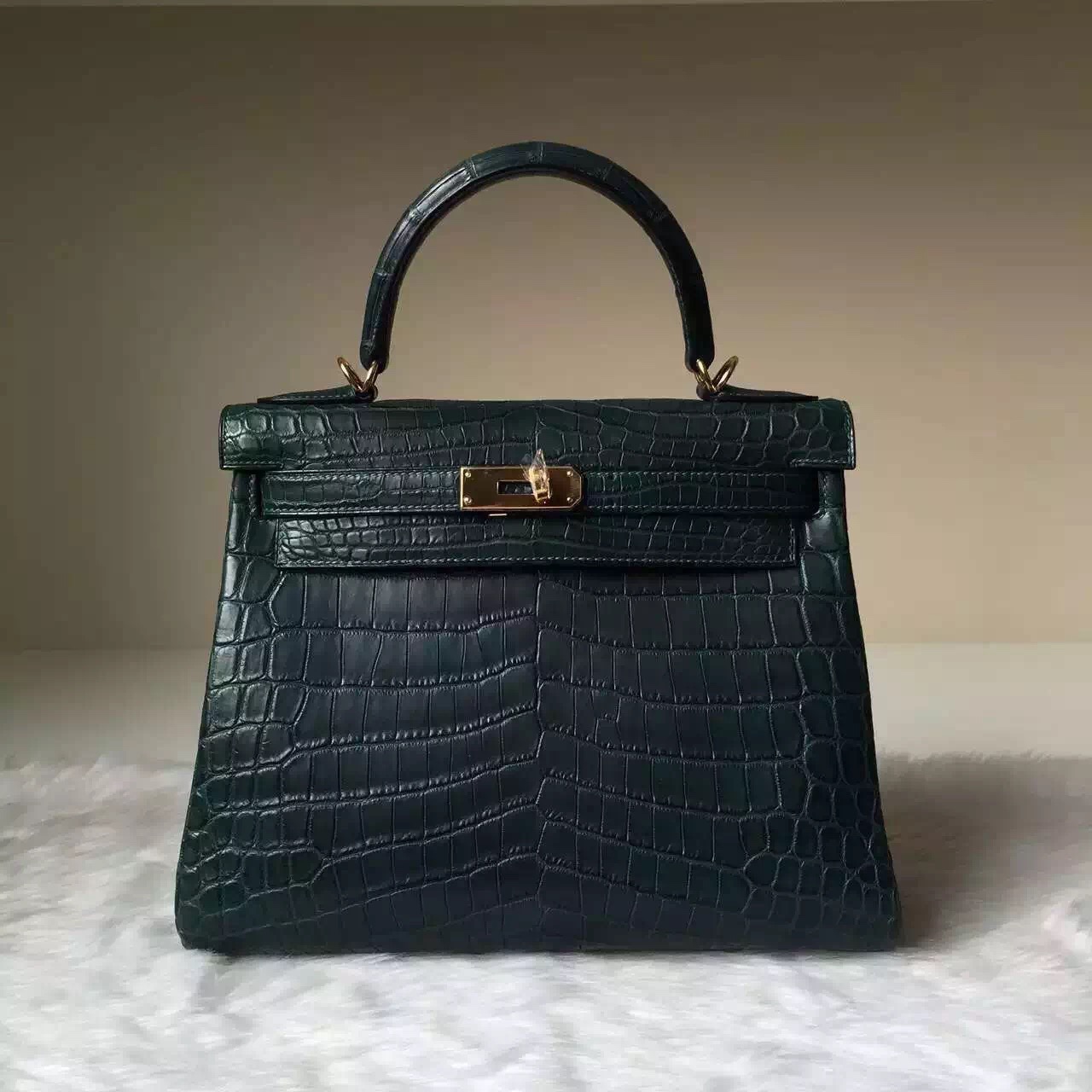 Hermes 1T Vert Tipien Crocodile Matt Leather Kelly 28cm