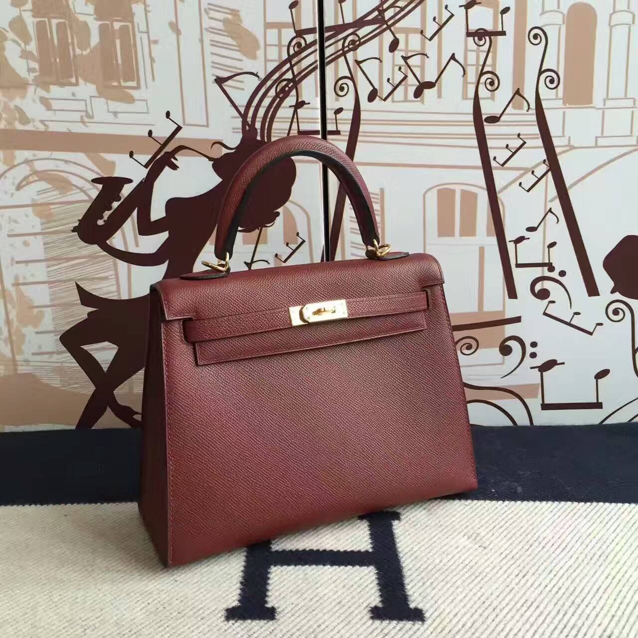 Hermes Kelly 25cm Handbag in CC55 Rouge Hermes Epsom Calfskin Leather