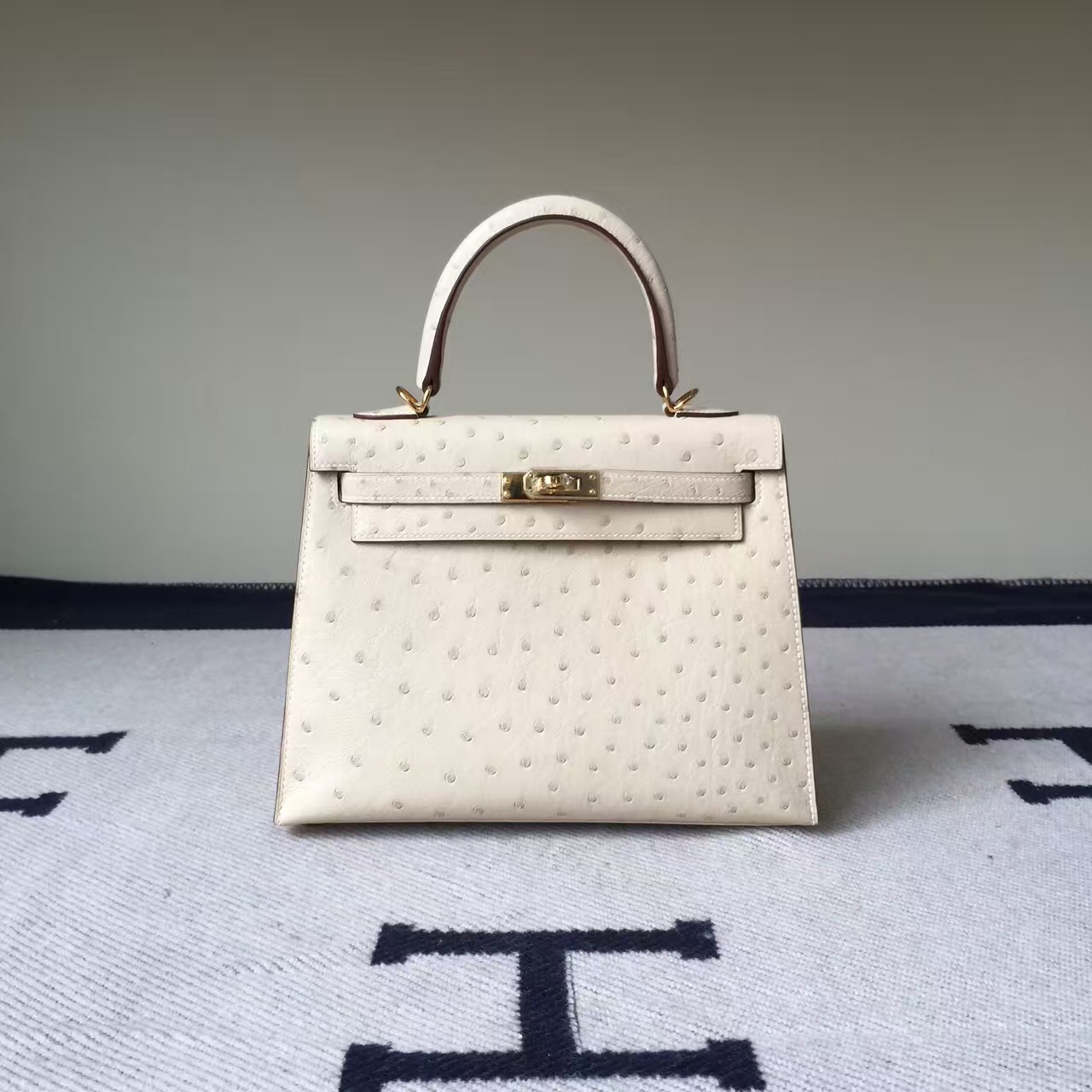 Brand: Hermes; Style: Sellier Kelly Bag25CM ; Material: Ostrich Leather; Color: 3C Wool White ;Hardware: gold/silver; Accessories: Padlock and keys, dust bag.Functions: tote bag,shoulder bag.