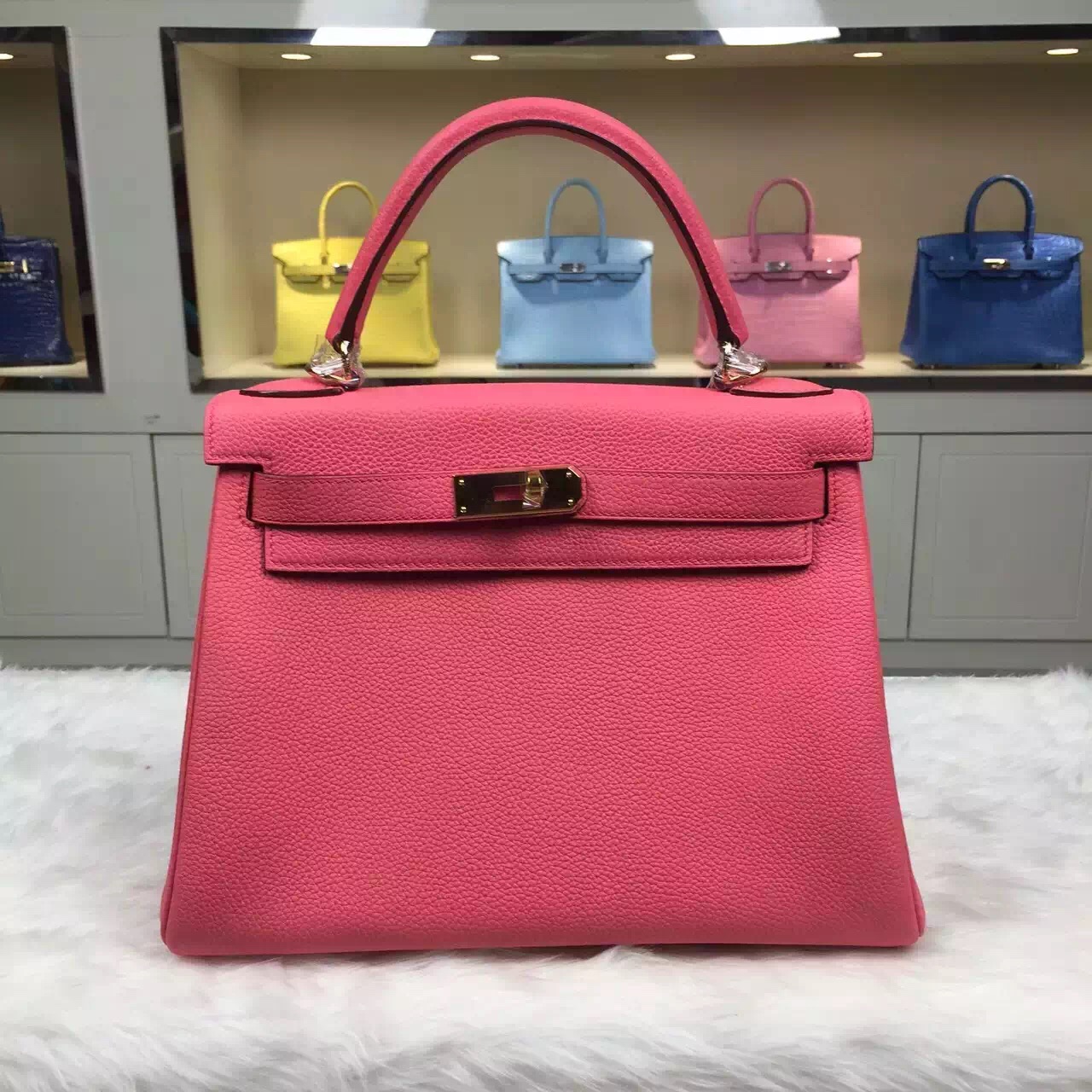 Customized Hermes U5 Rose Lipstick Togo Leather Kelly Bag 28CM Womens Tote Bag