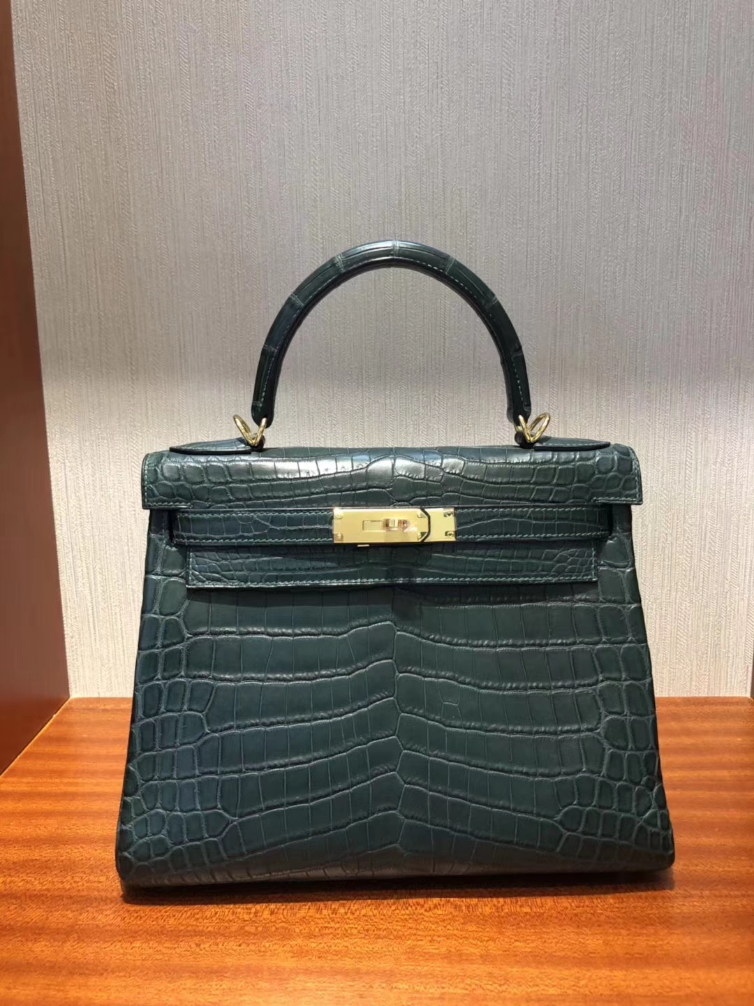 Brand: Hermes; Style: Retourne Kelly Bag; Material:Crocodile Matt Leather; Color:1T Vert Tipien; Size:28cm; Hardware: Gold; Accessories: Padlock and Keys, Dust Bag.Functions: Tote Bag,Shoulder Bag.