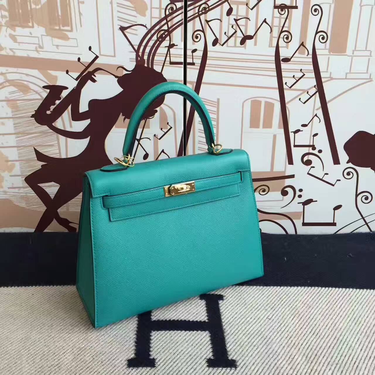 Brand: Hermes; Style: Sellier Kelly Bag 25CM ; Material: Epsom Calfskin Leather; Color: 7F Blue Paon; Hardware: gold/silver; Accessories: Padlock and keys, dust bag.Functions: tote bag,shoulder bag.