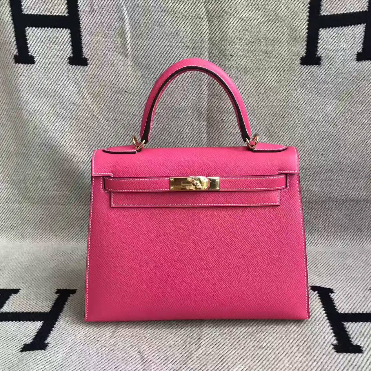Hermes E5 Rose Tyrien Epsom Leather Sellier Kelly Bag 28CM