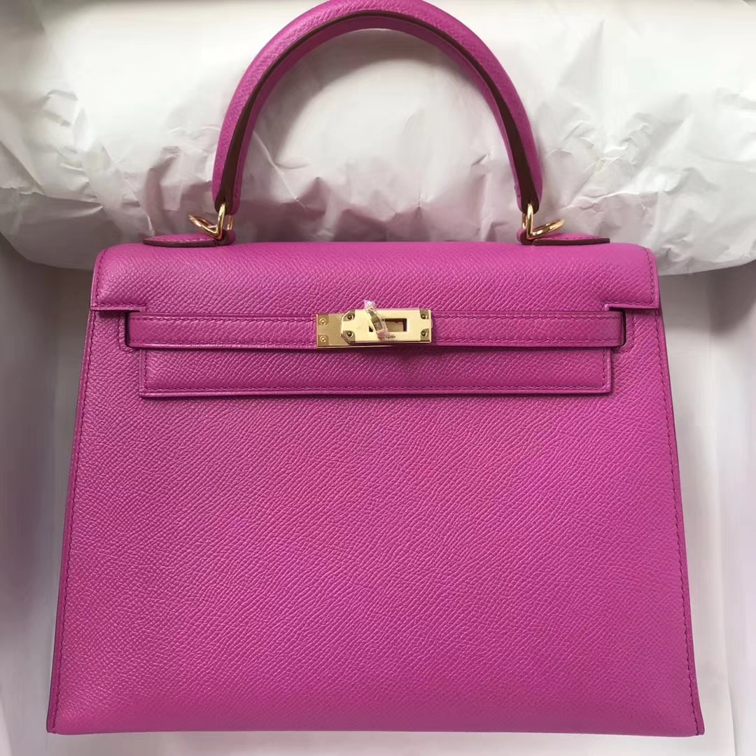 Brand: Hermes; Style: Sellier Kelly Bag; Material: Epsom Calf Leather; Color:9I Rose Magnolia;Size:25cm; Hardware:Gold; Accessories: Padlock and Keys, Dust Bag.Functions: Tote Bag,Shoulder Bag
