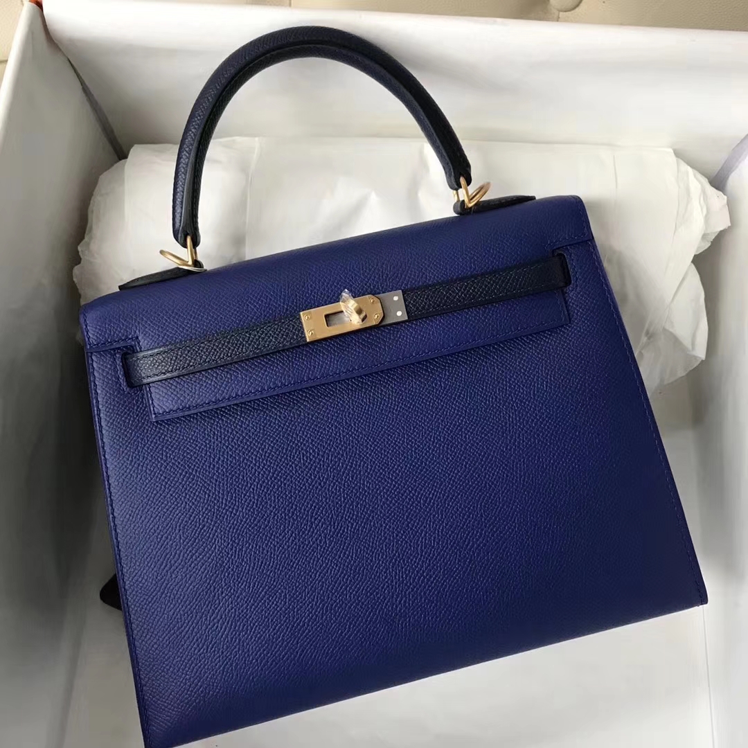 Hermes Epsom Calf Kelly 25CM Bag in 7T Blue Electric & Dark Blue Gold Hardware