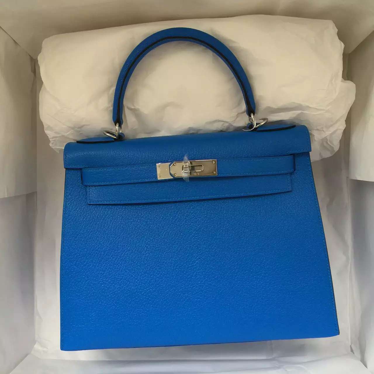 Hermes Kelly Bag 28CM T7 Blue Hydra Chevre Leather Womens Tote Bag