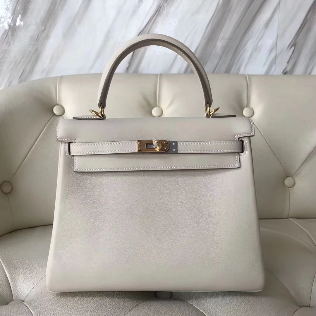 Hermes Swift Calf Kelly Bag 25CM in CK10 Craie White Gold Hardware