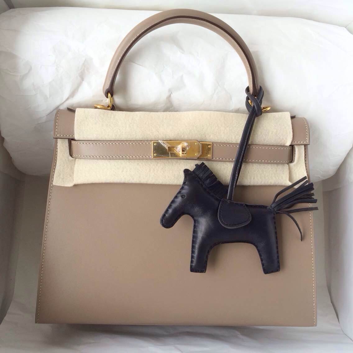 Hand Stiching Hermes Kelly Bag 28cm Sellier C 18 Etoupe Grey Box Calf Leather