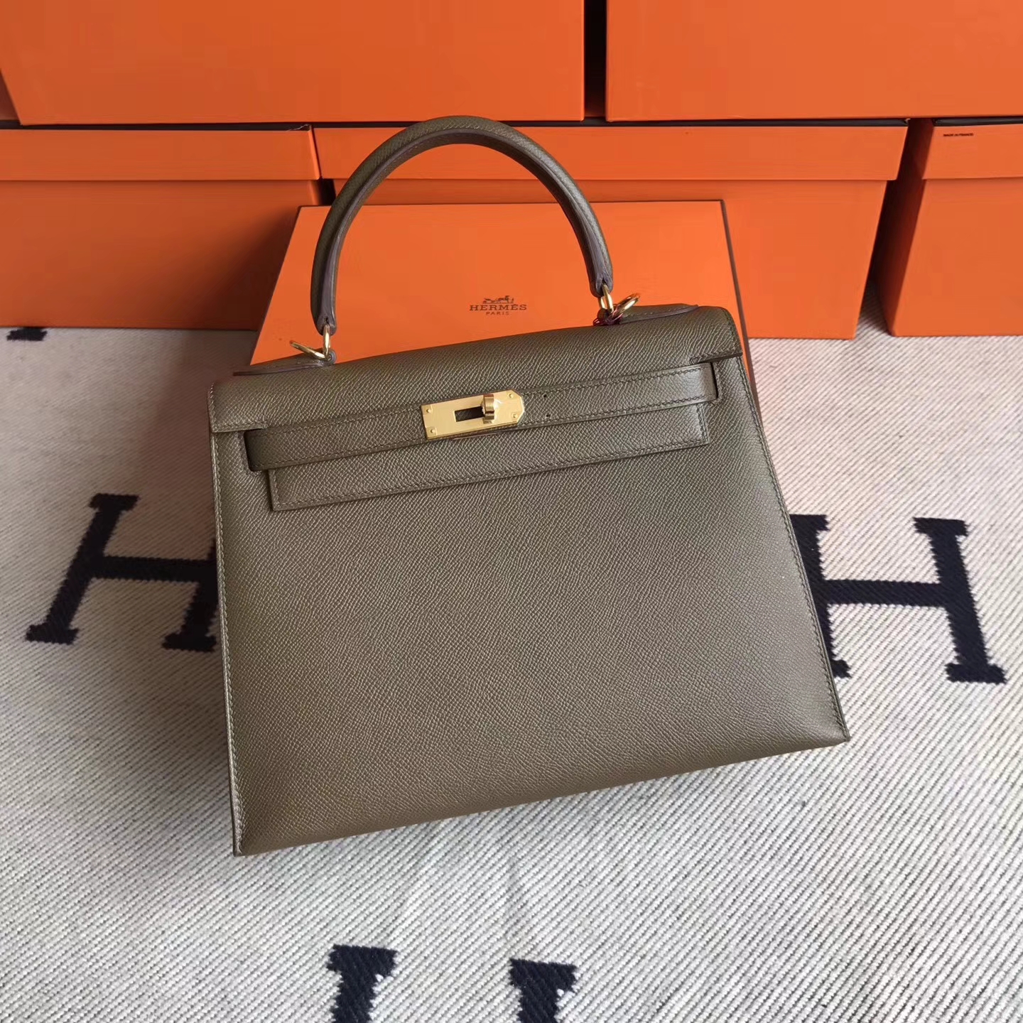 Brand: Hermes; Style: Sellier Kelly Bag; Material: Epsom Calfskin Leather; Color:Brown;Size:28cm; Hardware: Gold; Accessories: Padlock and Keys, Dust Bag.Functions: Tote Bag,Shoulder Bag.