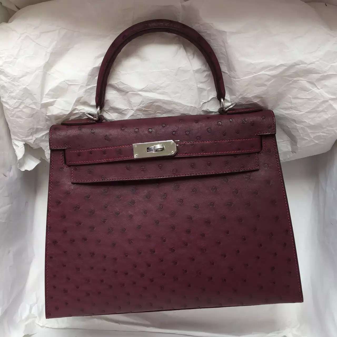 Brand: Hermes; Style: Kelly Bag Sellier; Material: ostrich leather;Color:B5 Ruby Red; Hardware: gold/silver; Accessories: Padlock and keys, dust bag.Function:tote bag.