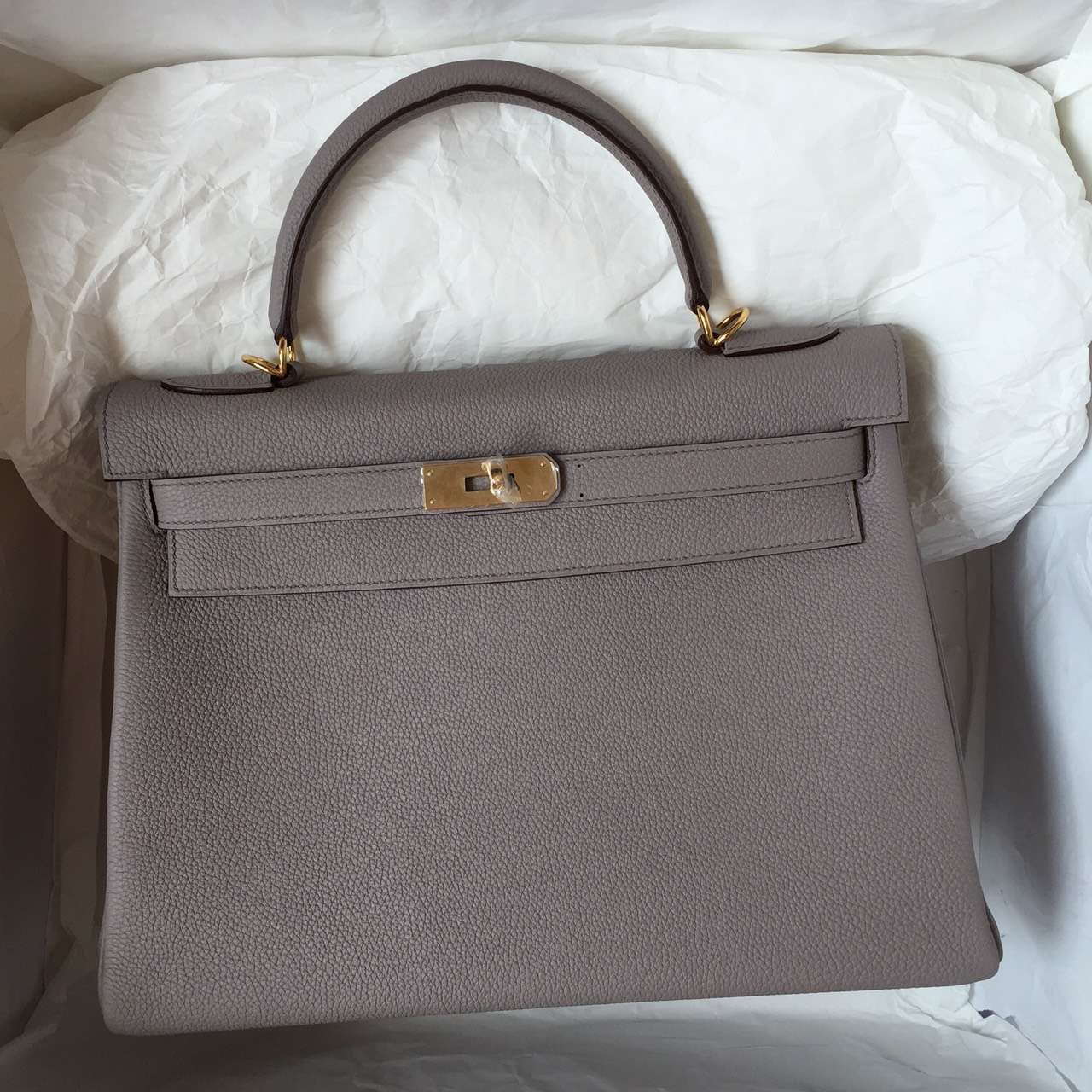 Hermes Kelly Bag 32CM Retourne Light Etain Grey Togo Leather Womens Handbag