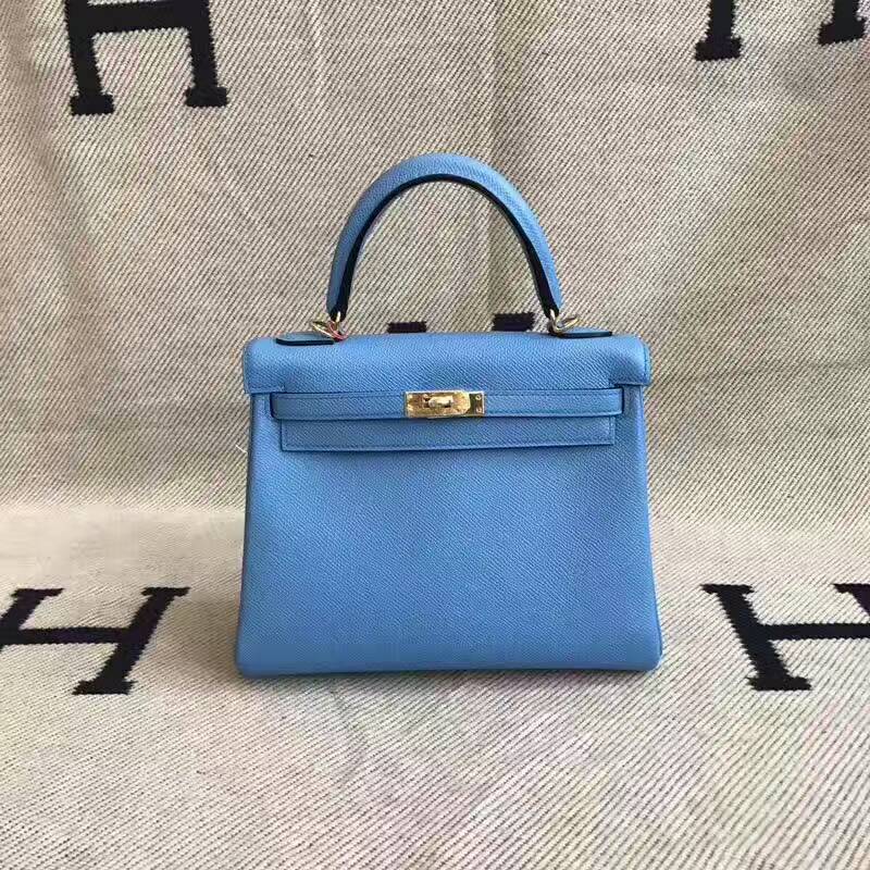 Brand: Hermes; Style: Retourne Kelly Bag25CM ; Material: Epsom Calfskin Leather; Color: 2T Blue Paradise ; Hardware: gold/silver; Accessories: Padlock and keys, dust bag.Functions: tote bag,shoulder bag.