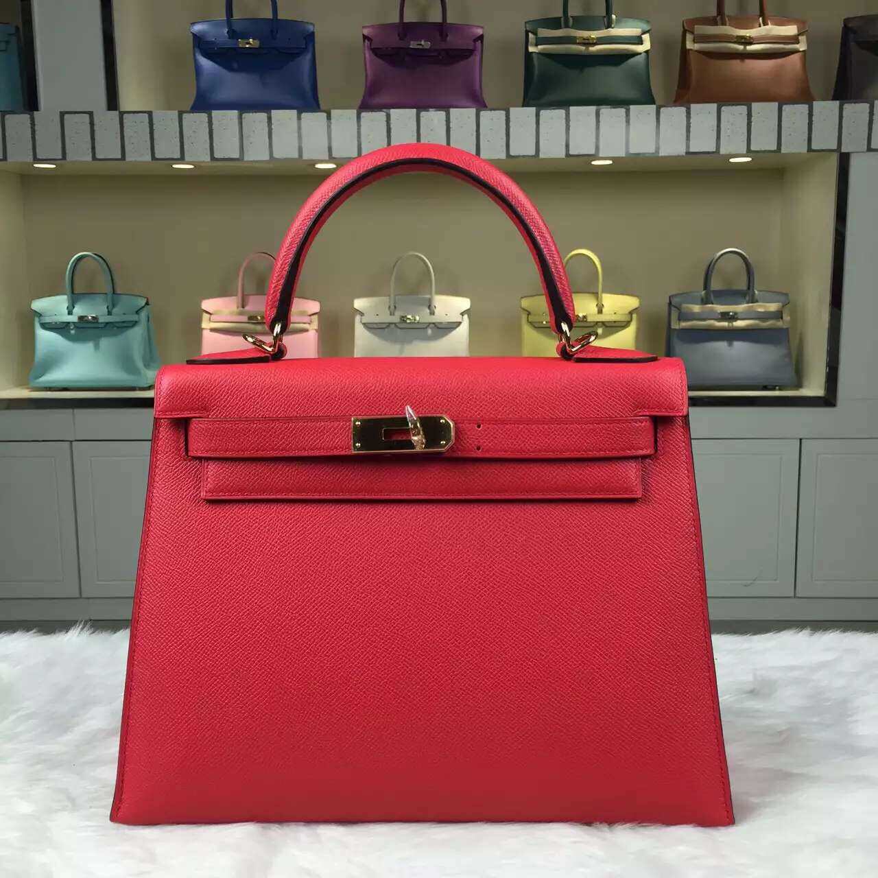 Hermes Kelly Bag 28CM 8V Orange Poppy Epsom Leather Gold Hardware