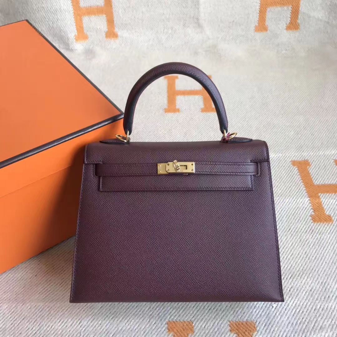 Hermes CK55 Rouge Hermes Epsom Calfskin Kelly Bag 25CM
