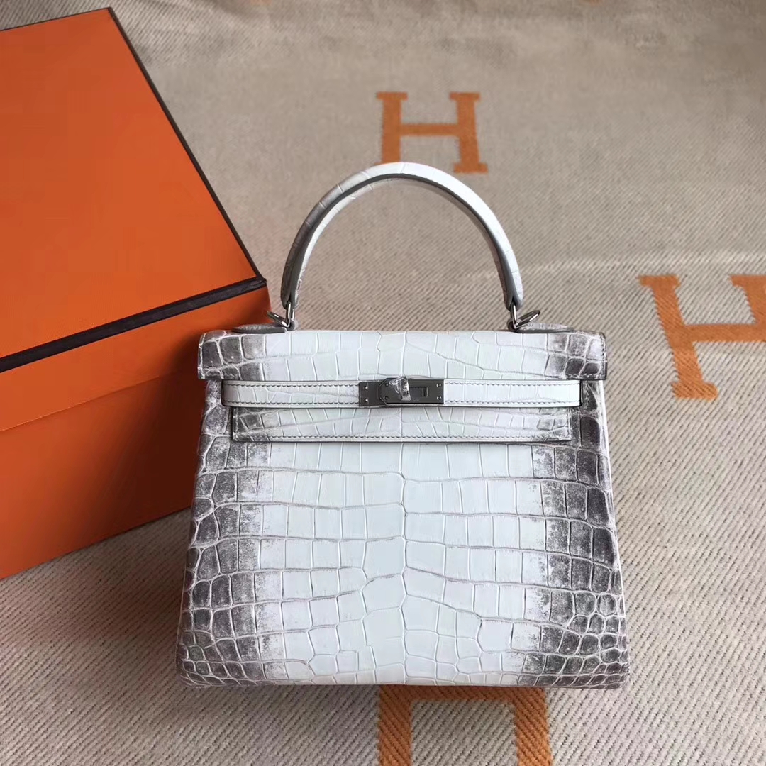 Brand: Hermes; Style: Retourne Kelly Bag; Material: Crocodile Leather; Color: Himalaya ; Size:25cm; Hardware: Silver; Accessories: Padlock and keys, Dust Bag.Functions: Tote Bag,Shoulder Bag.