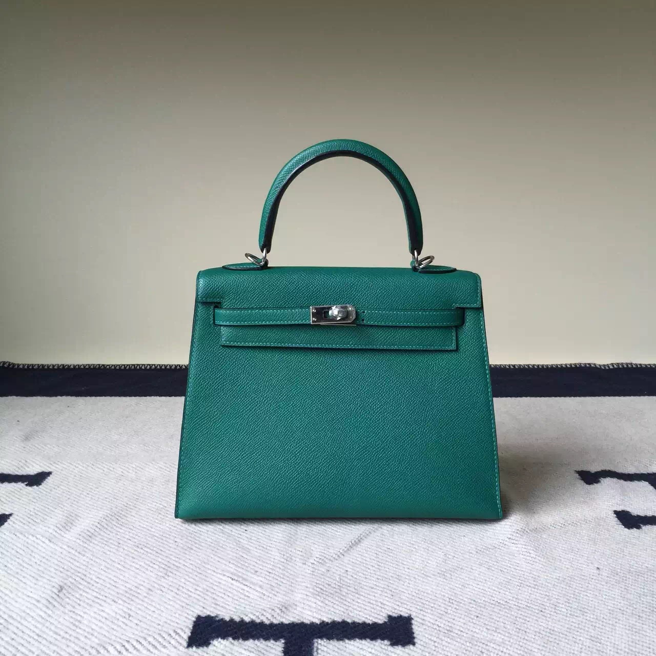 Hermes Z6 Malachite Green Epsom Leather Kelly Womens Bag 25cm