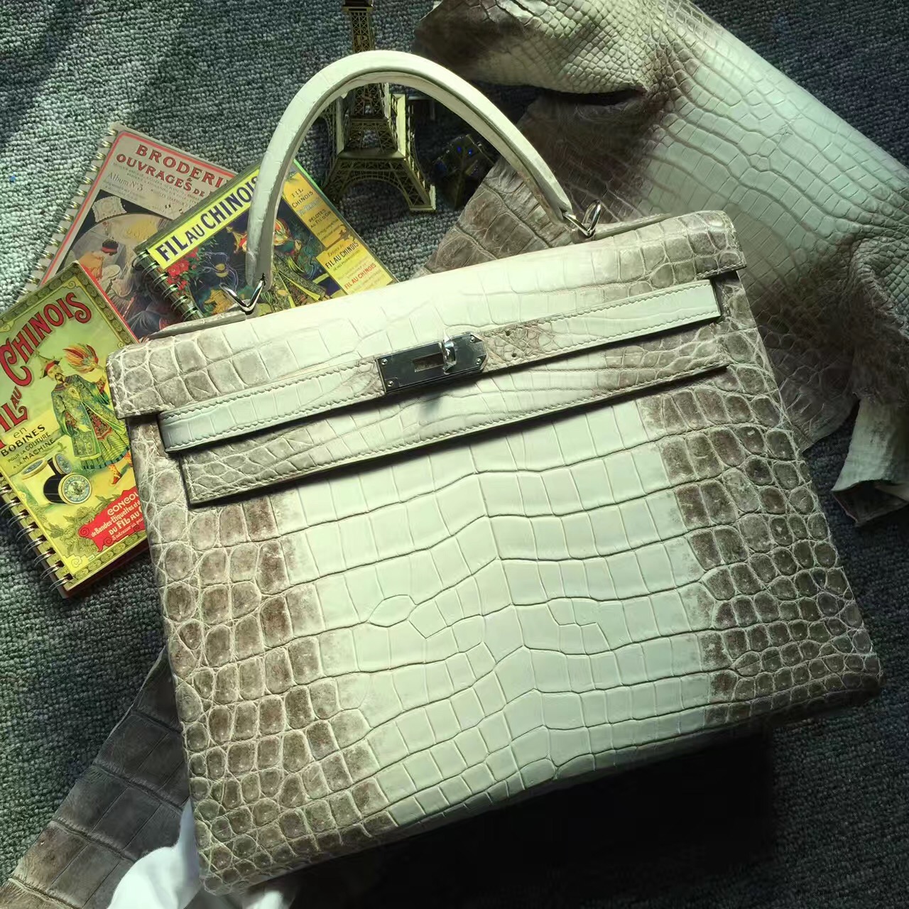Brand: Hermes; Style: Retourne Kelly Bag32CM ; Material: Crocodile Leather; Color: Himalaya Color; Hardware: gold/silver; Accessories: Padlock and keys, dust bag.Functions: tote bag,shoulder bag.