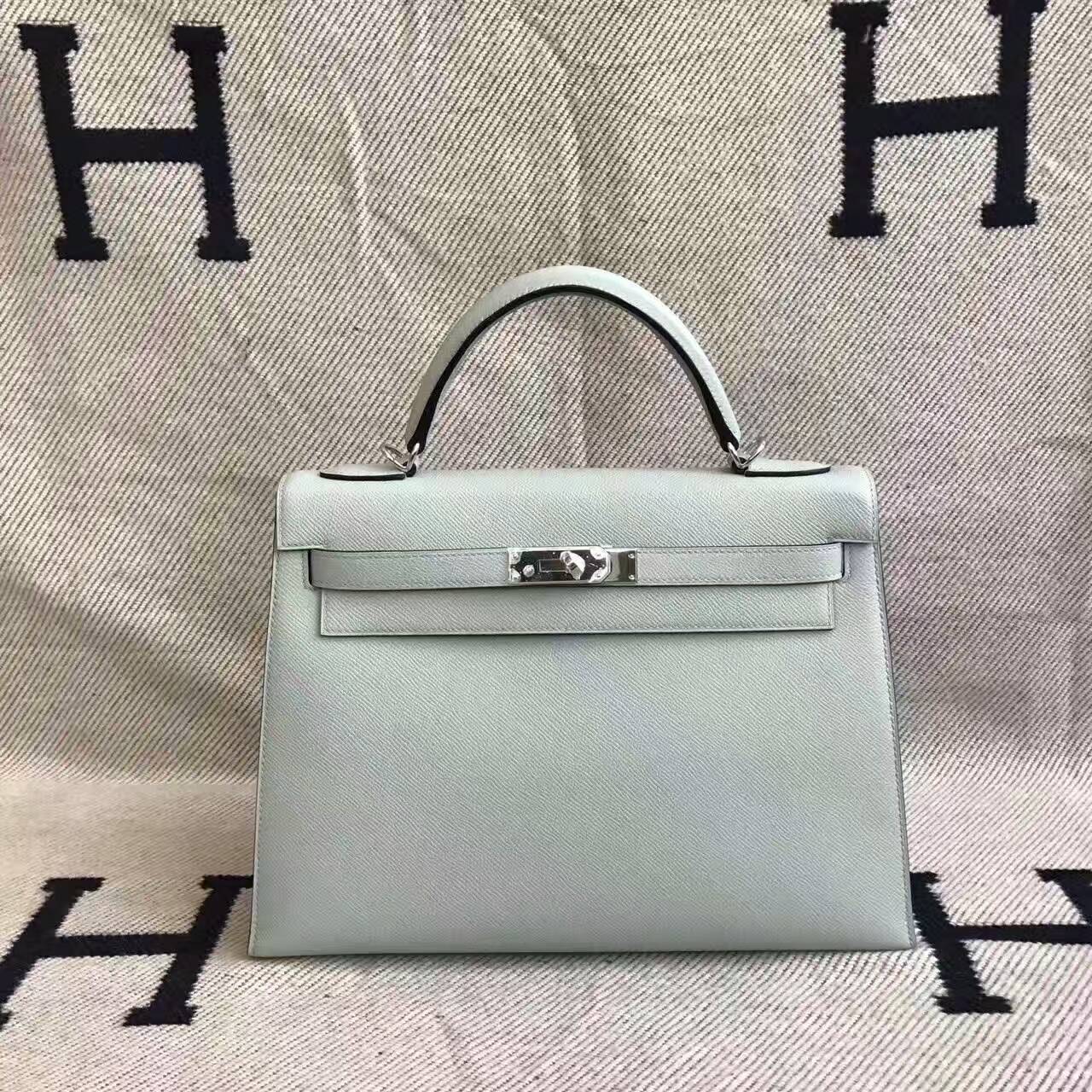 On Hermes 8U Blue Glacier Epsom Leather Kelly Bag 32CM